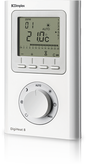 A Dimplex DigiHeat8 egy központi fűtőpanel vezérlő, mely akár az egész ház elektromos felügyeleti egysége is lehet. A központi modul 8 különböző egyedileg programozható csatornán tudja a ház fűtés vezérlését ellátni, mellyel jelentős energiamegtakarítást érhetünk el.